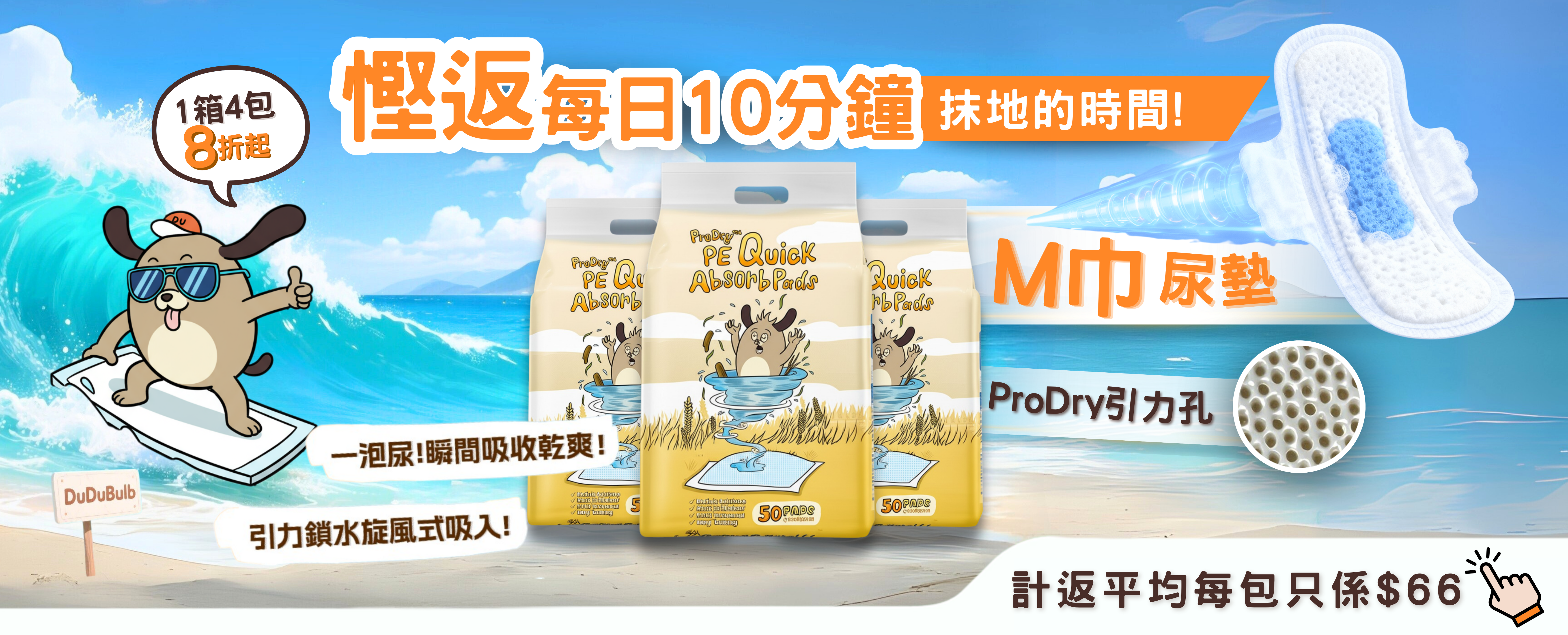 DuDu.Bulb PE ProDry™引力孔吸水尿墊[箱裝優惠](50片x 4包)