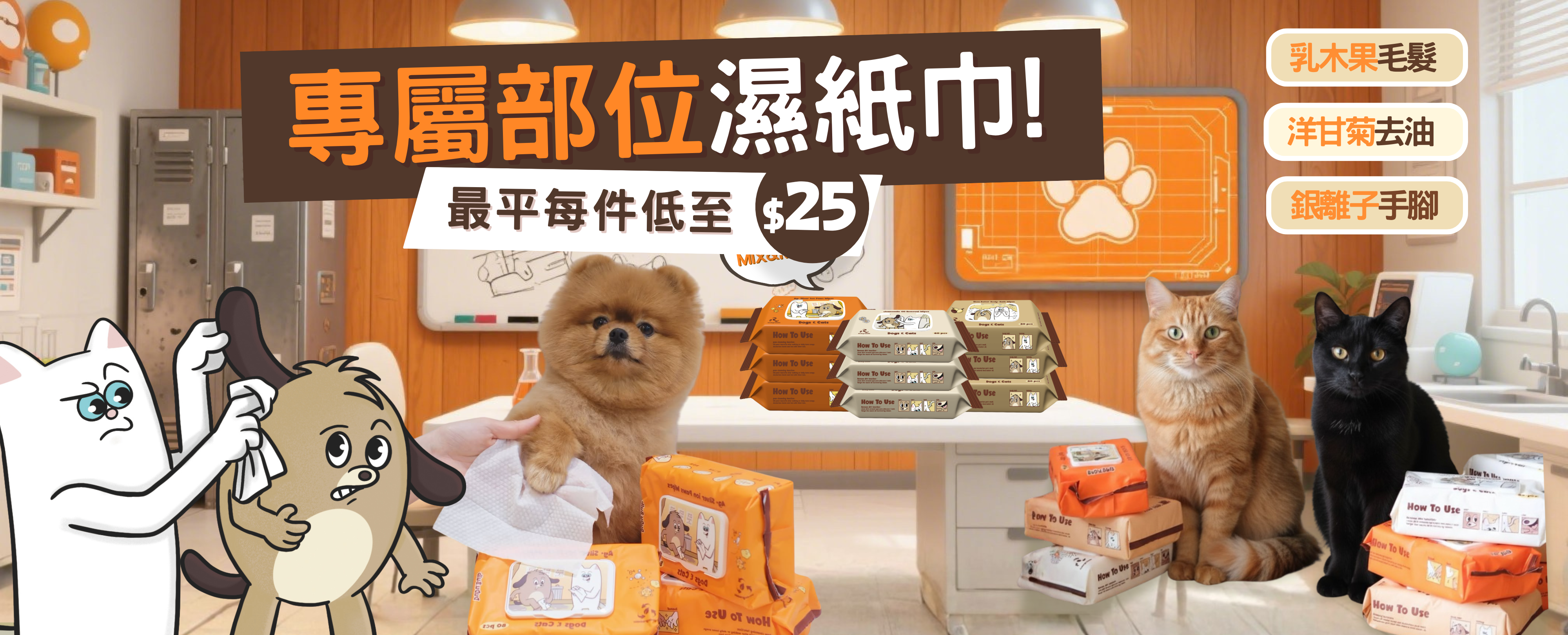 【限時原箱】毛髮專用乳木果洗澡濕紙巾80片x12包