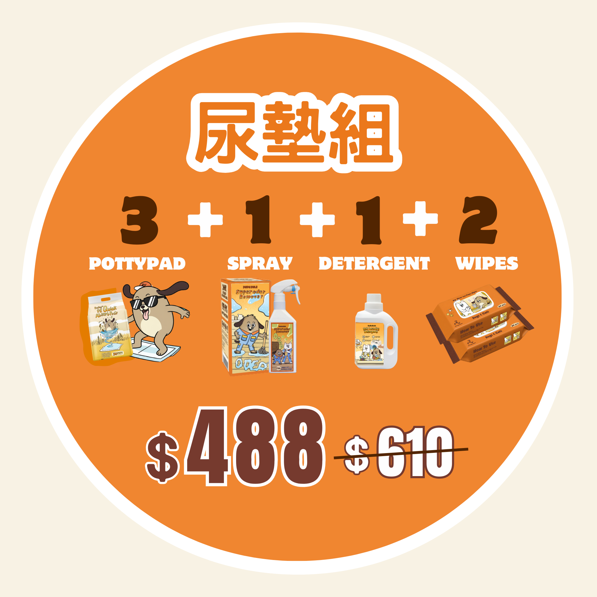 【寵物展】狗尿墊套裝 (3包尿墊 +1支洗衣液 +2包銀離子濕紙巾+ 噴霧)